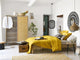 This high comfort wooden bed is designed with a footboard with wooden craves, which adds a classic look to your bedroom. With its intricate wooden carvings, this bed is perfect for a room with contemporary décor.