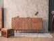 Sideboard design offers two drawers in the middle that double up as doors. The middle section has a magnetic push button to open the doors. They are also finished with diamond patterns. Beautiful diamond patterns on the front of the cabinet give it a unique charm.