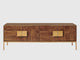 Bring a touch of sophistication to your home with the Versaw Wood Cabinet. Crafted from solid mango wood with a light walnut finish, this cabinet boasts a unique square shape. Four closed compartments provide ample storage space, while the iron handles make it easy to open. The iron base and legs in a golden color add to its modern appeal. This wooden cabinet is a versatile piece that will elevate any space, perfect for your living room or bedroom. Order now and bring home this elegant and functional storage solution!